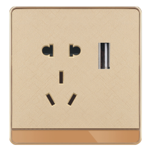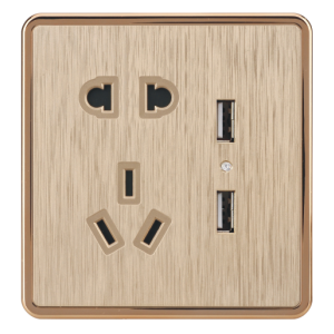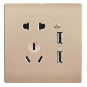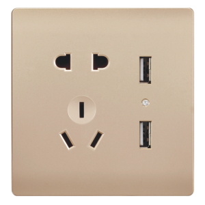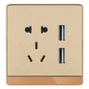 双USB带10A三孔金色