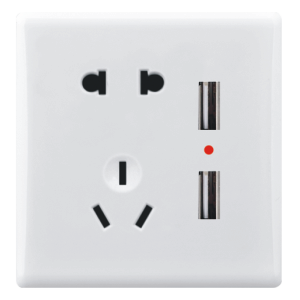 双USB带10A三孔白色